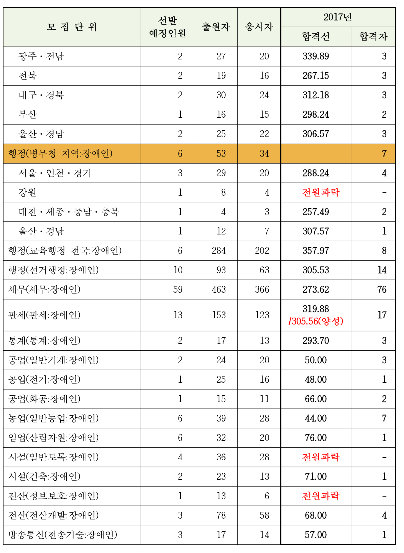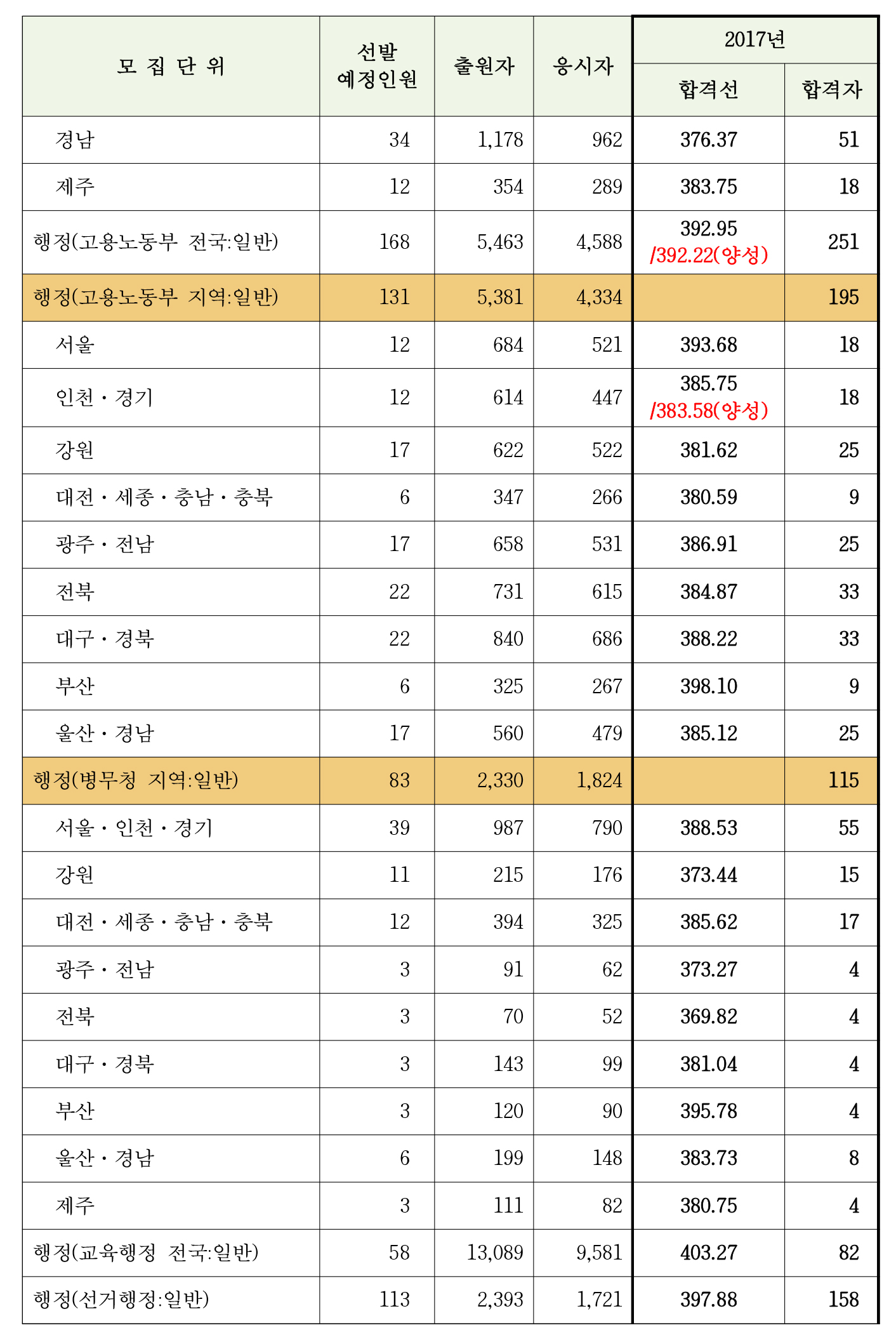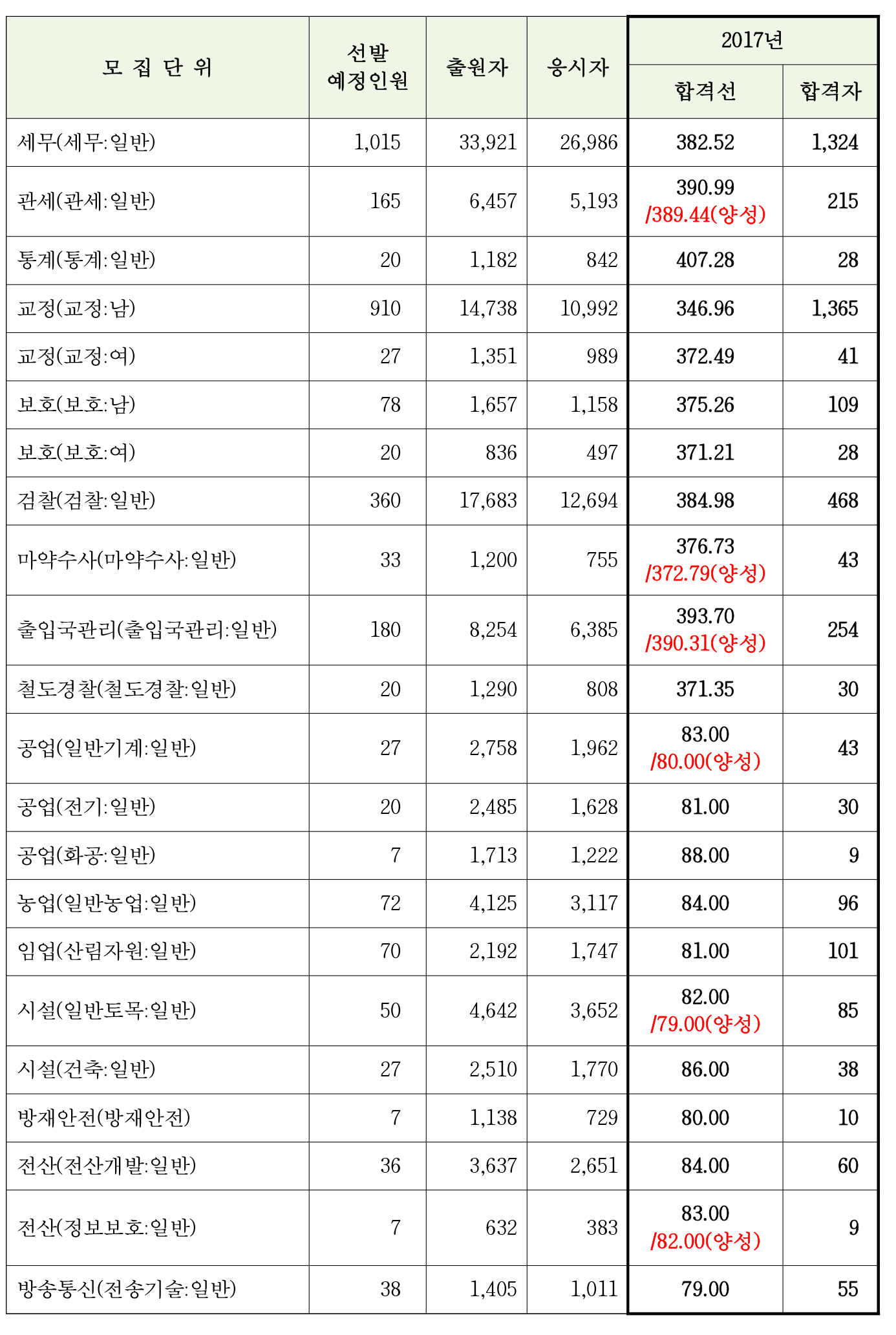 2017 인사혁신처 국가공무원 9급 공채 필기시험 합격선
