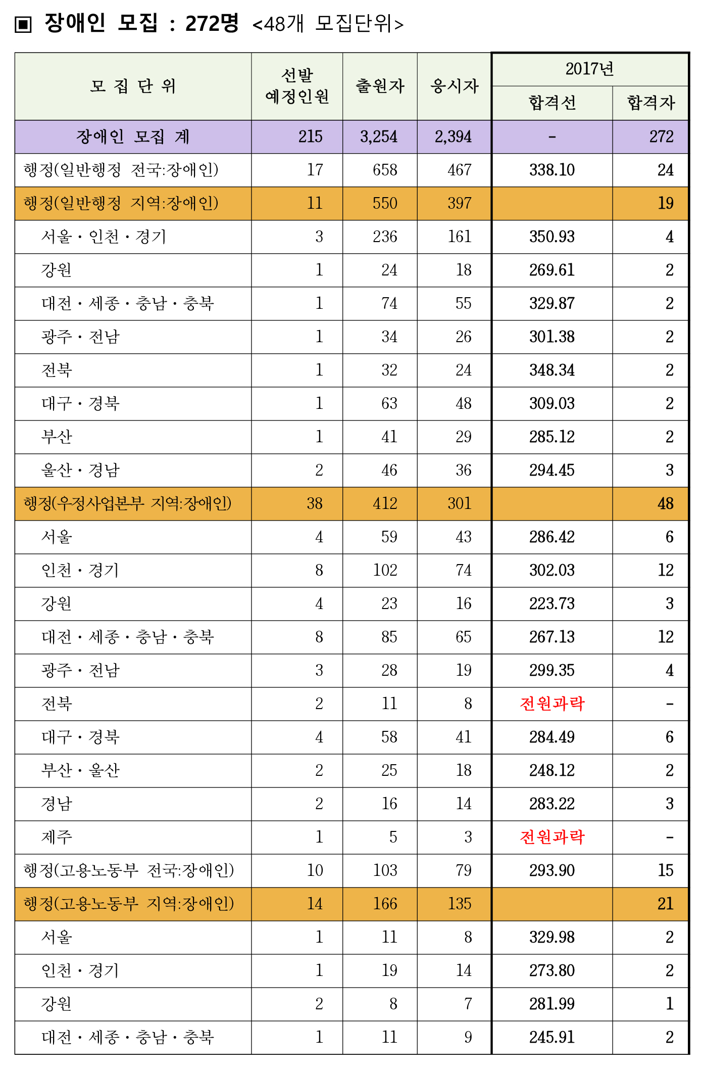 2017 인사혁신처 국가공무원 9급 공채 필기시험 합격선 안내