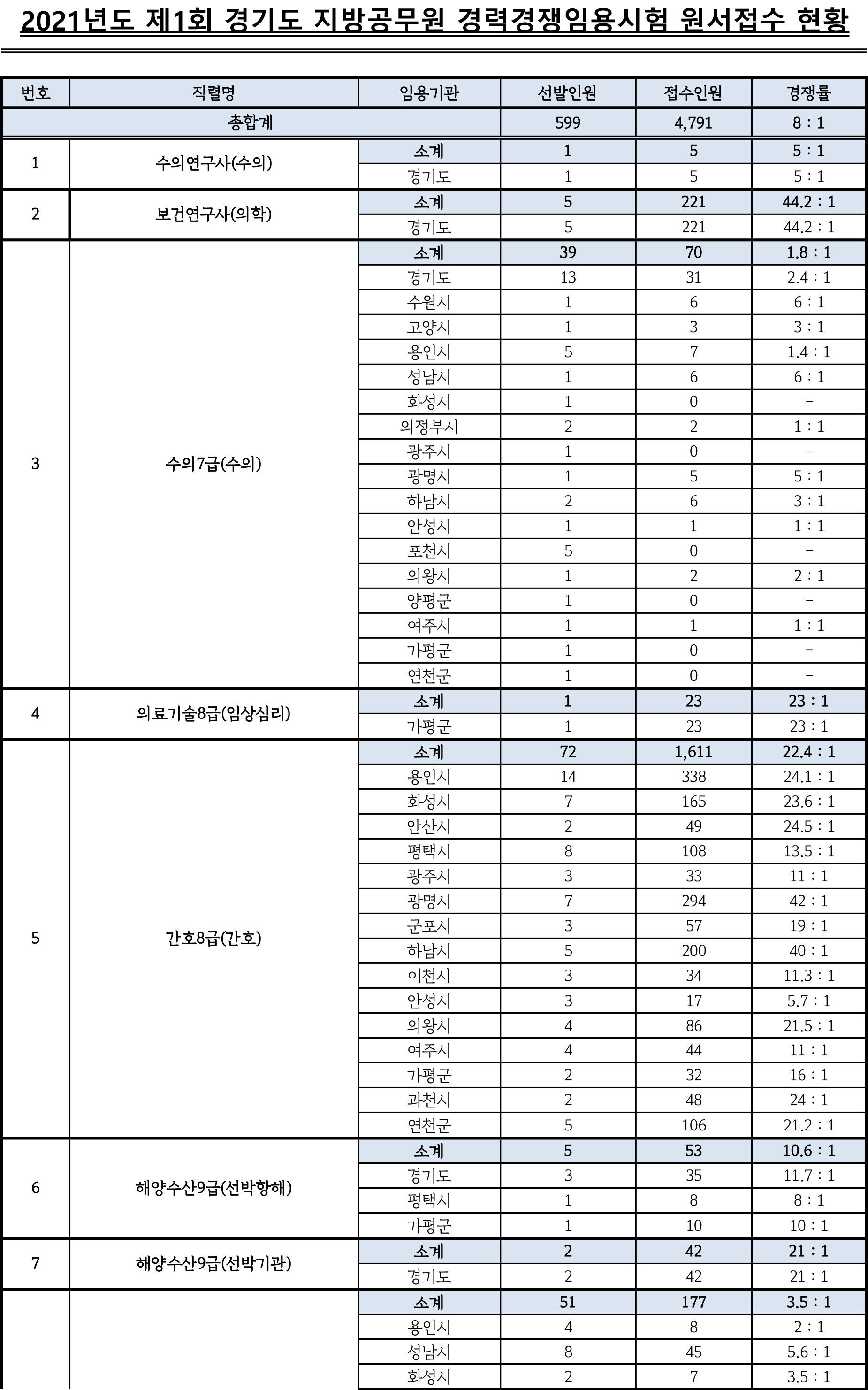 2021 제1회 경기도 지방공무원 경력경쟁임용시험 경쟁률